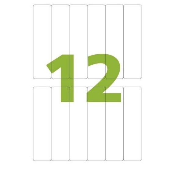 Etiqueta retangular / Tamanho da etiqueta (mm) 22 x 90 / Etiquetas por folha: 12 / Embalagem com 12 folhas