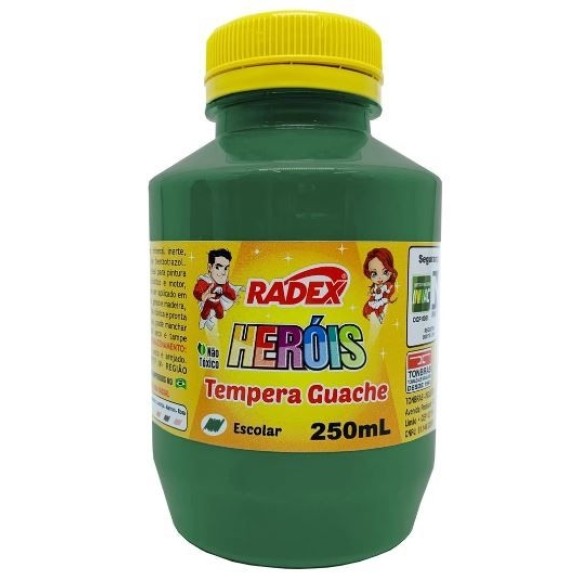 Tempera guache Radex é ideal para pintura com papéis, no trabalho didático e motor, artesanato e decorativo. Pode ser aplicado em papel, papel cartão, cartolina, gesso e madeira.