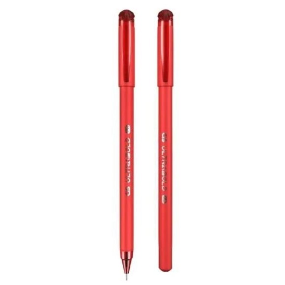 Caneta esferográfica Ultra Bold / Possui ponta tipo agulha / Tampa ventilada com clip plástico / Ponta média 1.0mm / Cor da tinta: Vermelha / Registro Inmetro: 001698/2021.