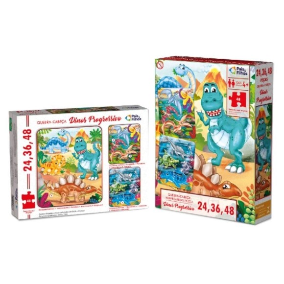 QUEBRA-CABEÇA 24/36/48 PEÇAS DINOS PROGRESSIVO REF.792412 PAIS & FILHOS
