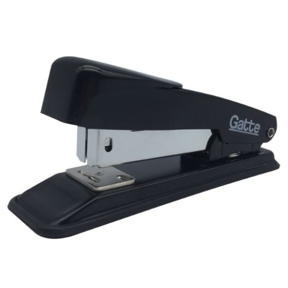 Grampeador Metálico 11.7cm p/ até 20 Folhas / Dimensões: Comp.: 117mm x Larg.: 55mm x Alt.: 33mm / Características: Grampeia até 20 folhas e utiliza grampos 24/6 ou 26/6 / Composição: Aço, base de apoio em plástico e pintura eletrostática de alta resistência.