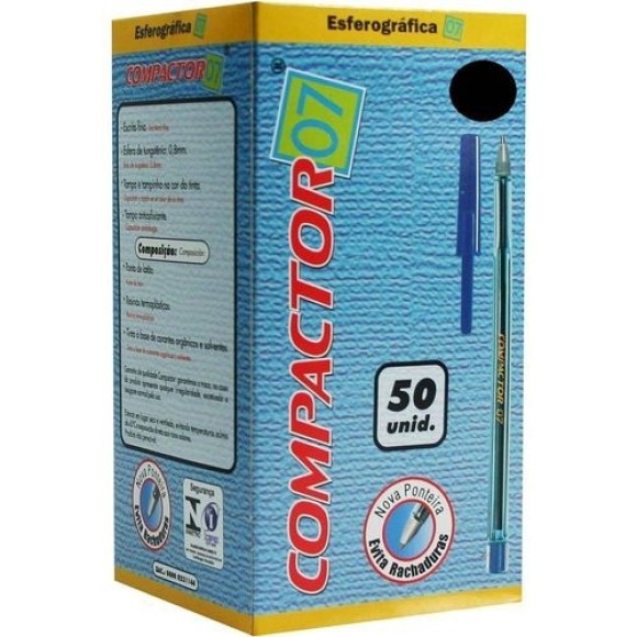 CANETA ESFEROGRÁFICA 0.7 PRETA CAIXA C/50 COMPACTOR