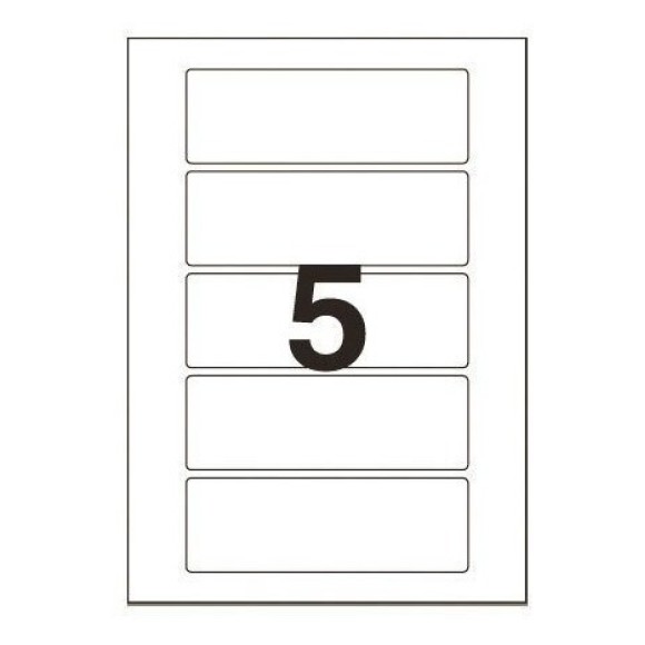 Cor: branca / Tamanho da etiqueta: 35 x 105 mm / Etiquetas por folha: 05 / Embalagem com 12 folhas / Formato A5