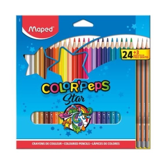 LÁPIS 24 CORES COLOR PEPS + 3 LÁPIS GRAFITE MAPED