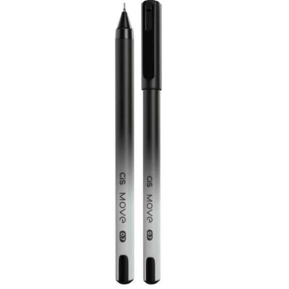 Caneta esferográfica Cis Move / Ponta tipo agulha / Ponta extrafina de 0.7mm / Tampa ventilada com clip / Cor da tinta: Preta / Registro Inmetro: 001698/2021.