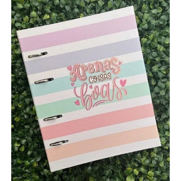 Formato 160mm x 230mm - 80 folhas - 90g/m² / Capa dura single book exclusividade Merci / Fecho magnético / Laminação Fosca / Hot Stamping / Miolo interno 90 g/m² com furação universal / Ferragem cromada para 4 furos / Bolsa interna em Papel Couchê com Laminação Fosca / Folha de Adesivos / 12 Divisórias com laminação fosca.