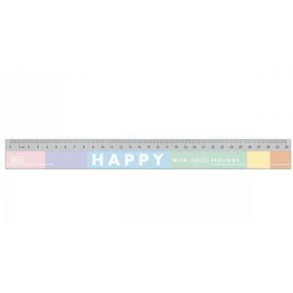 A Régua em Poliestireno 30cm Happy auxilia no traçado, conferência de documentos e na realização de desenhos. É resistente e possui marcações em cm e mm. Ideal para uso escolar e em escritório. Produto Certificado INMETRO (Artigo Escolar/Segurança) – Registro 005885/2018