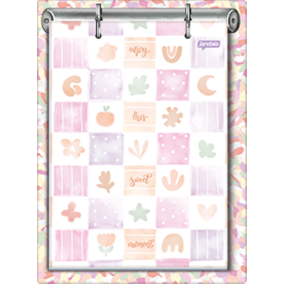 Detalhes: Porta fichas / Formato: Vertical / Tamanho: ¼ / Medidas: 140mm x 200mm / Gramatura: 120g/m² / 60 Folhas pautadas com bordas coloridas