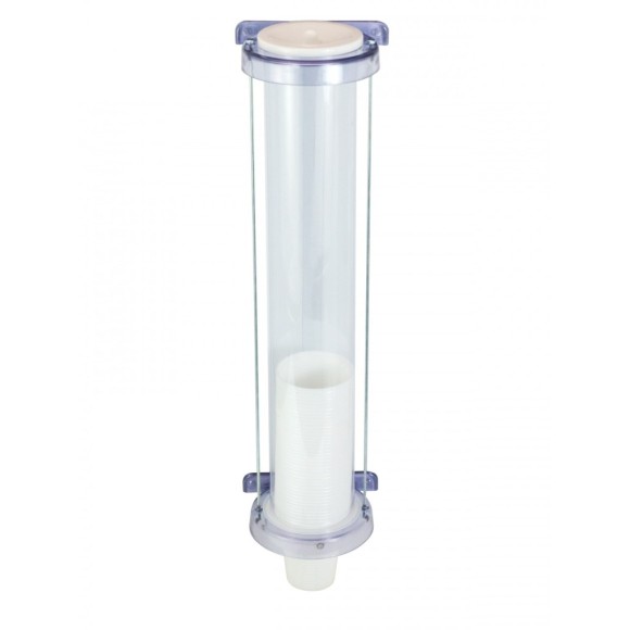 Dispenser de Copos Para Água de 180/200ml / Tubo Confeccionado em PVC Semi Rígido / Base Superior e Inferior Injetado em Plástico ABS Cristal Fumê / Possui Garras (Escova) em Polietileno de Baixa Densidade que Ajustam a Saída do Copo / As Varetas de Fixação de Uma Base à Outra São Confeccionadas em Aço Carbono Galvanizado / Acompanha uma Tampa Injetada em Plástico ABS e Kit Com 4 Parafusos e Buchas Para Fixação na Parede / Medidas: (AxLxP): 470mm x 130mm x 116mm