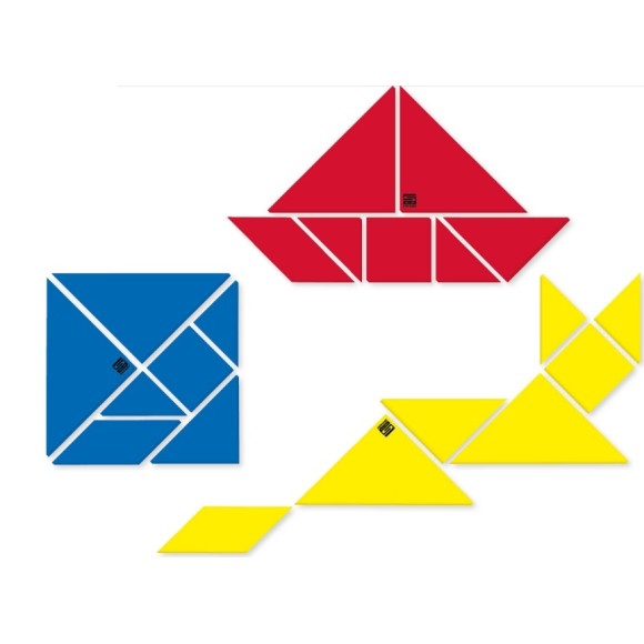 Tangram em E.V.A / Formas geométricas que permitem a montagem de inúmeras figuras / Dimensões: 21,5cm x 11cm x 5mm
